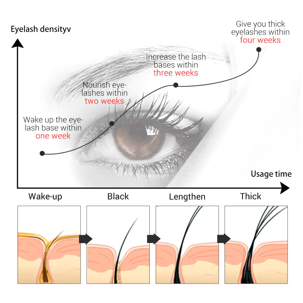 Visible Results: Watch your lashes transform as they grow longer, fuller, and thicker with continued use of Eyelash Growth Serum. Achieve the big-eyed look you've always dreamed of without the need for costly and time-consuming treatments.