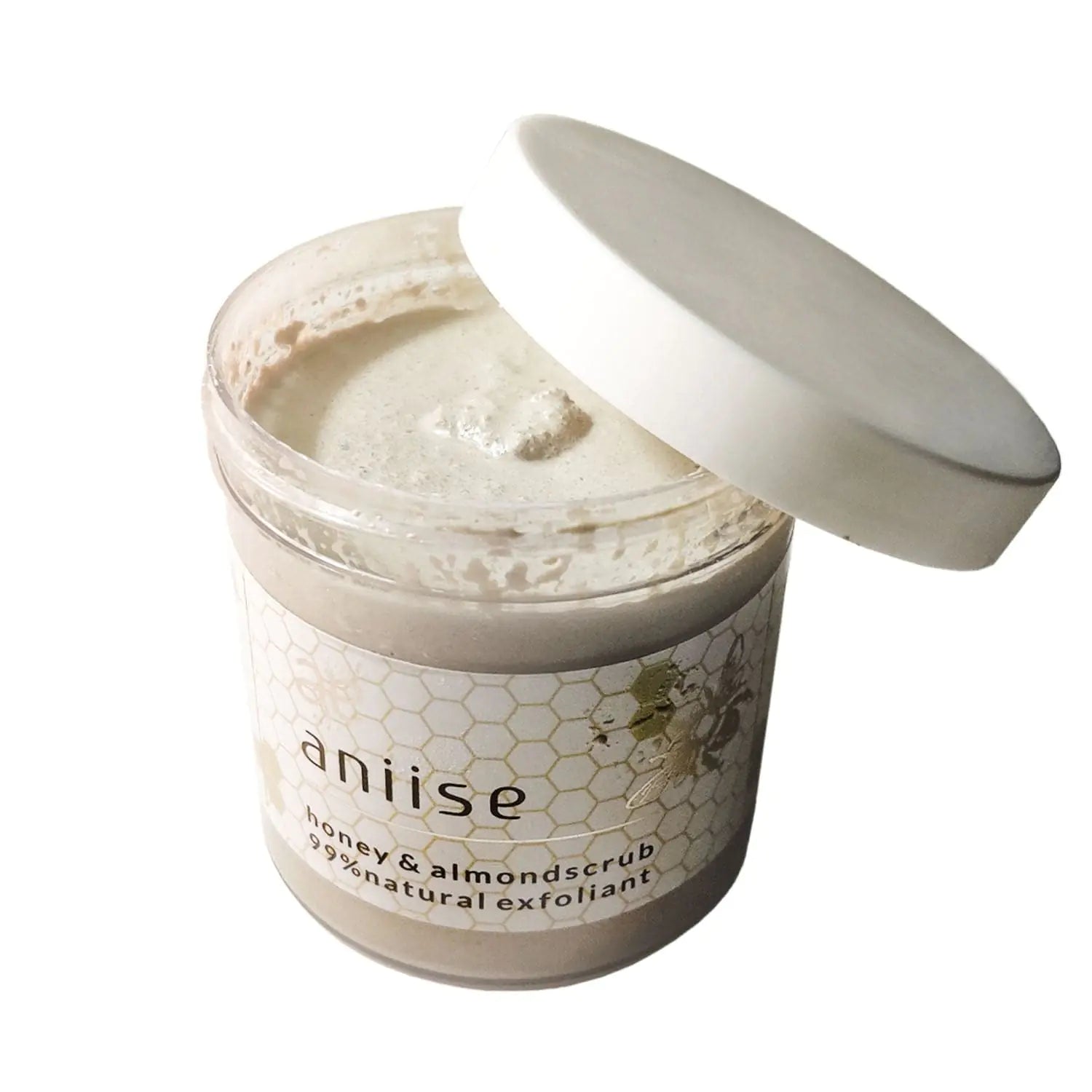- Apply: Take a generous amount of Aniise's Honey & Almond Exfoliating Body Scrub and gently massage it into your skin. Begin at your feet and work your way up to your neck, using circular motions to exfoliate and remove dead skin cells, impurities, and grime.